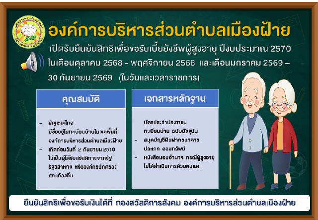 ประชาสัมพันธ์การยืนยันสิทธิเพื่อขอรับเงินเบี้ยยังชีพผู้สูงอายุ ประจำปีงบประมาณ 2570
